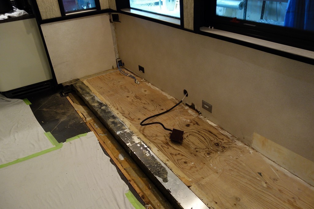 007 Prevost XLII All new plywood where sofa and dinette is located repaired by Excalibur Coach